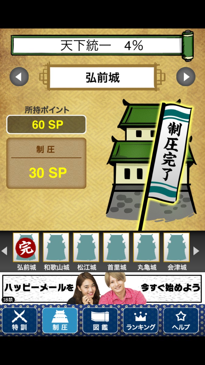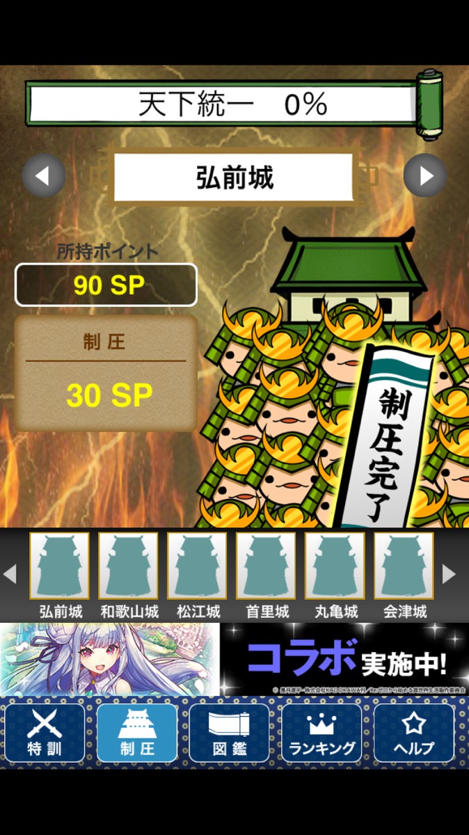 ・戦国ポイントを使ってお城を制圧(制圧ボタンをタップ)