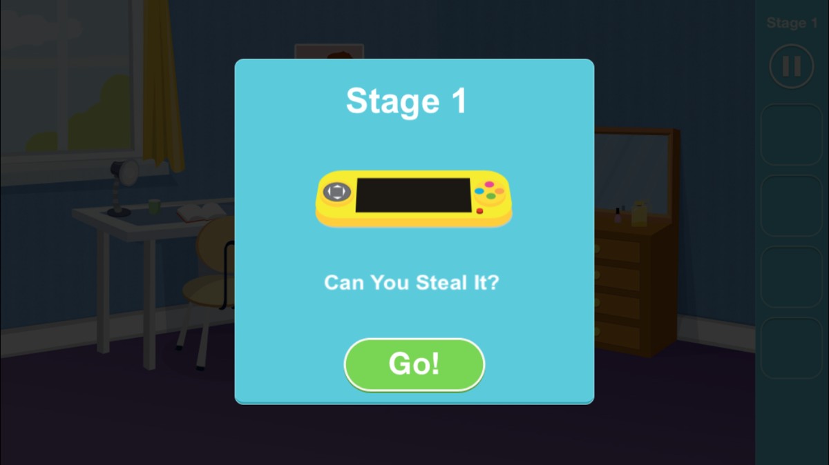1.「Can You Steal It: Secret Thief」のステージ1をプレイしてみました。ターゲットとなるアイテムが表示されます。今回はゲーム機がターゲットです。