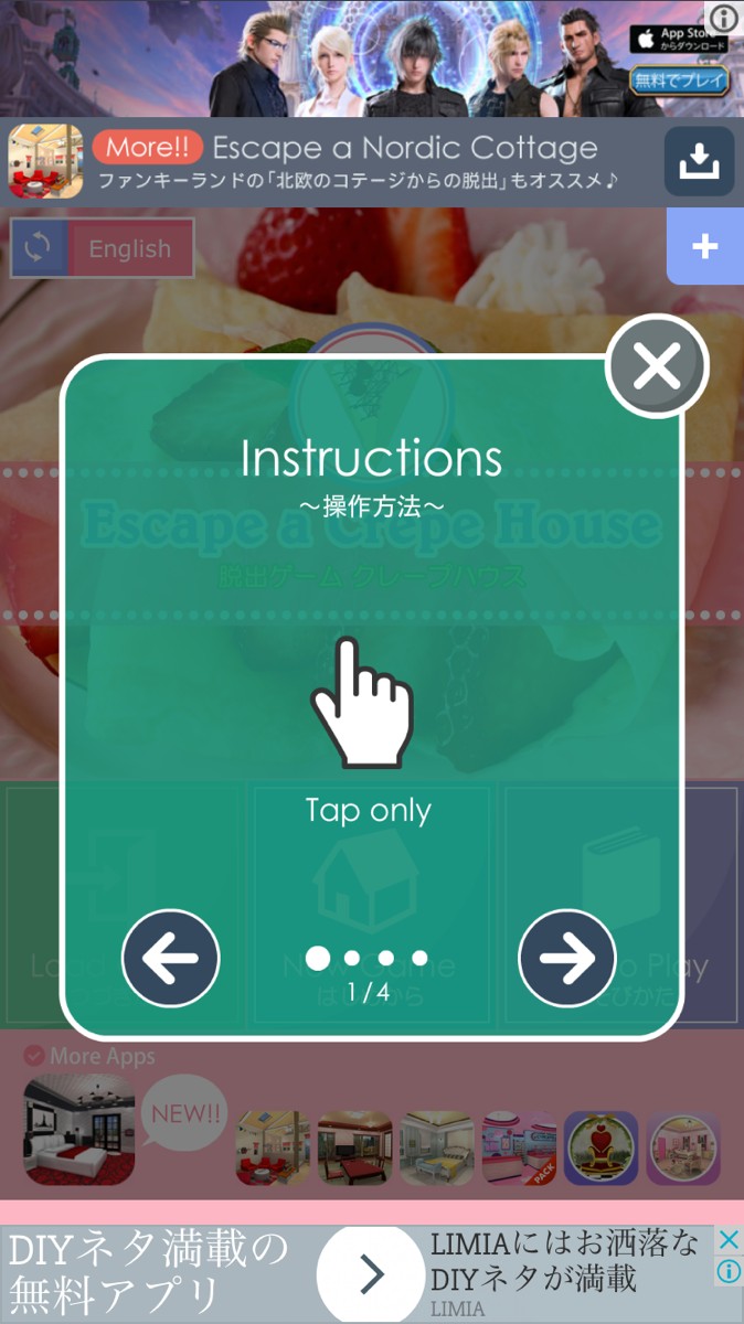 このアプリは、クレープハウスから脱出したら終了します。次のステージがないので、終わった後はスッキリ達成感を感じることができますよ。