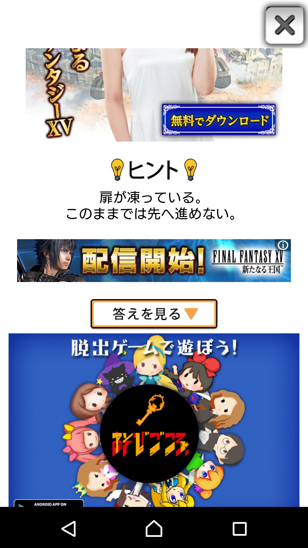 基本的に難易度は低めですが、ステージ後半になると謎解きの手順が複雑になってくるため、詰まってくることもあるでしょう。そんなときは画面右上のアイコンをタップし、「ヒント」を見ましょう。「ヒント」をタップしてすぐはそのステージの取っ掛かりが書いてあります。更に「答えを見る」をタップすれば、そのステージの完全な攻略法が表示されます。完全な攻略情報を見たからといって特にペナルティがあるわけでも、この点のアプリにありがちな広告動画を見るという手順が必要なわけでもないので、気軽に見てみてください。