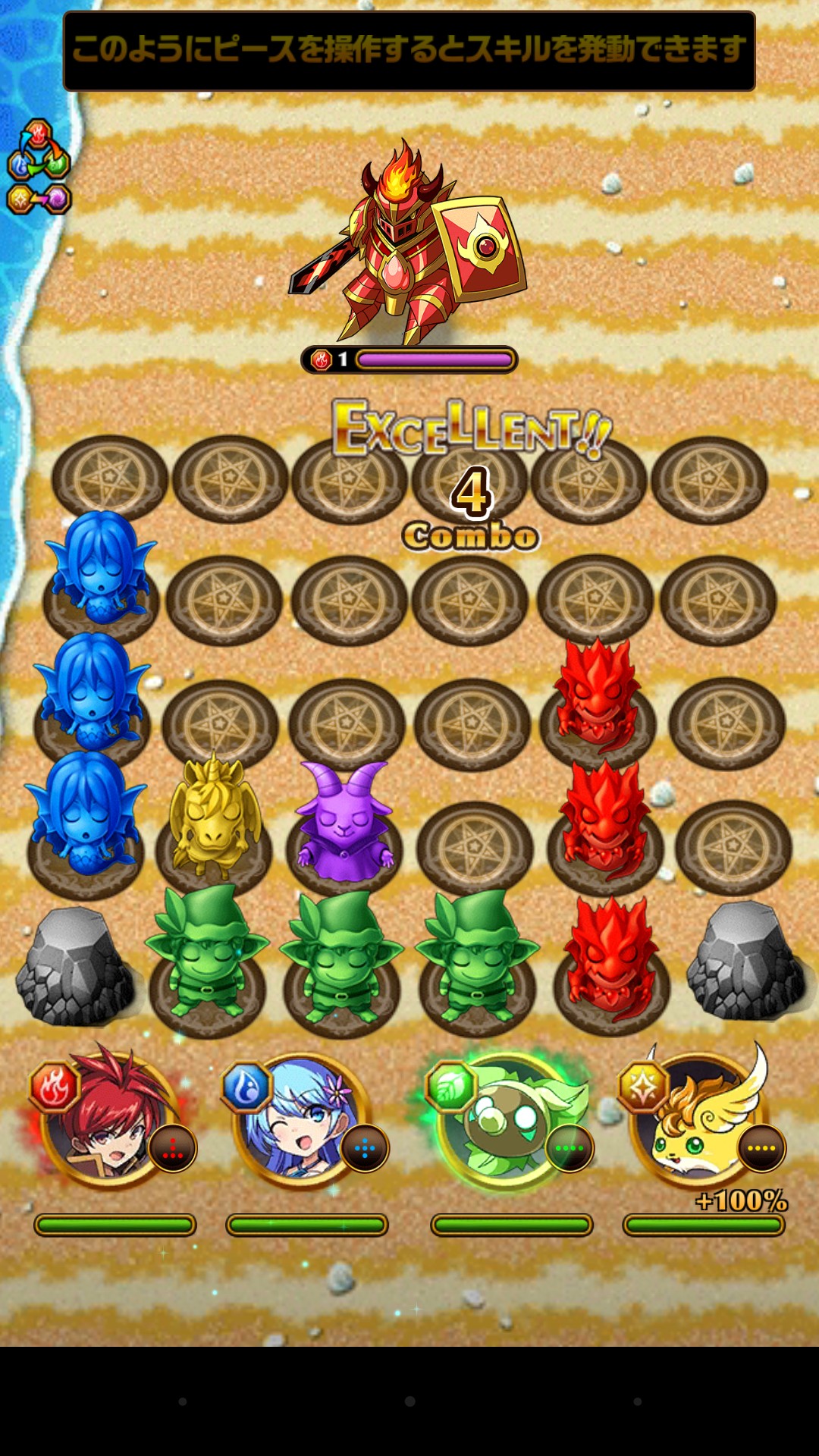 パズル部分は制限時間内であれば、何度でも動かせます。キャラのスキルを発生させるために特定の並び方を考えなければなりませんが、それ以外はとりあえず揃えていけばいいので初心者でも操作がすぐに分かるでしょう。