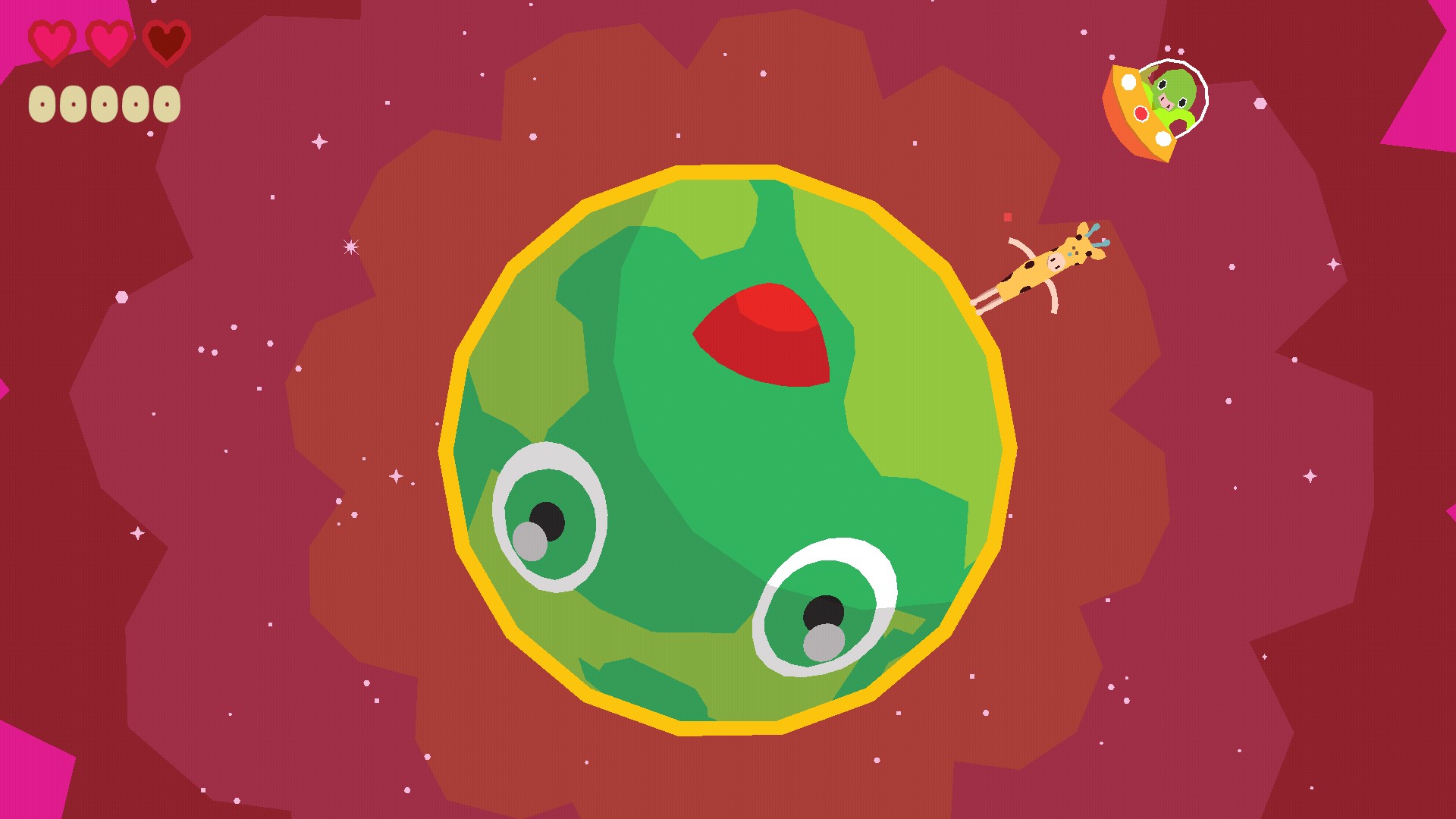 丸い惑星の上にUFOが飛んでいます。そのUFOを操るのがプレイヤーです。