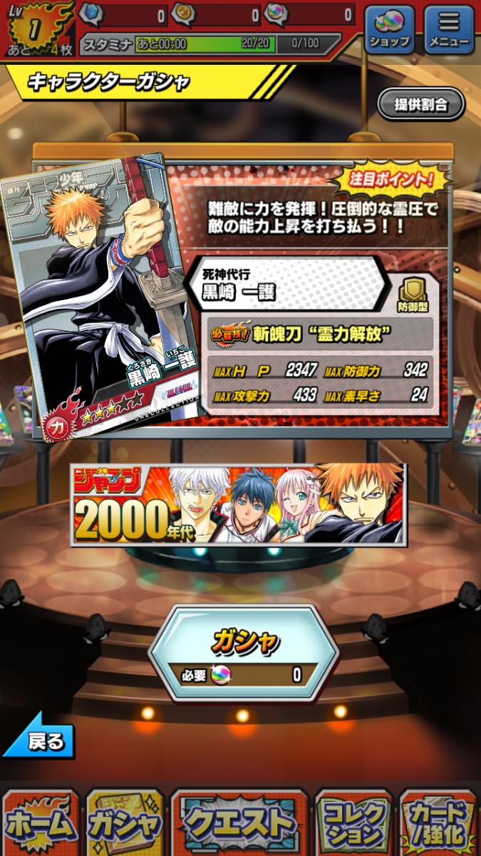 大好きだったあのシーンの1ページがアプリで動き出す!懐かしのあのキャラクターのカードでバトルを楽しむ!予想以上のクオリティの高さに驚きます。遊び方は簡単で、ジャンプ人気漫画の主人公など原画をもとにした「キャラクターカード」と、名シーンの一コマを再現した「シーンカード」の2種類のカードを集め、ジャンプ作品に登場する強敵と戦うゲームです。ジャンプはアニメ化されている作品もの多いですが、アニメで見るのとはまた違って原画のシーンが動くので、純粋な漫画ファンの心が躍ります。