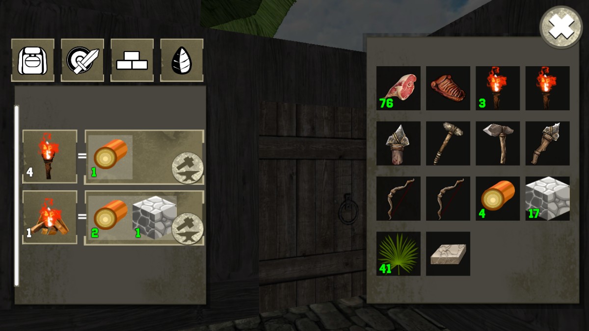 自由度はかなり高いですが遊び方は簡単で、アイコンを見ながら直感で動かせます。右上のリュックのマークをタップするとアイテムBOXが開き、アイテムを作るために必要な材料が、イラストで表示されていますので、島を探して集めてきます。