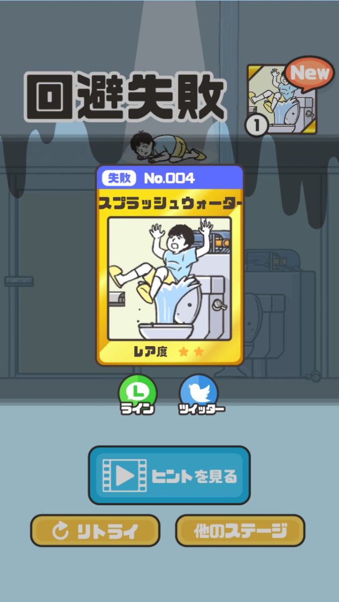 さらにその失敗シーンを意味づけるものとして、カード集めがあります。面白シーンはカードになって図鑑に保存されます。カードにはレア度が星で表示されていて、難易度の高いレアな回避や失敗にはカードも金やプラチナだったり特別感が。ただステージクリアするだけではなく、失敗も楽しんでカード図鑑をコンプリートしましょう!
