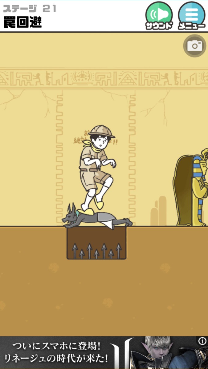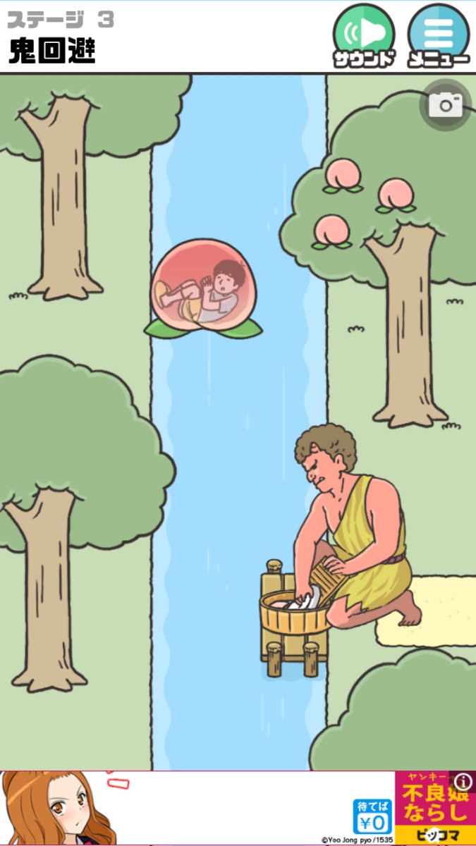 このゲームを考えた開発者に拍手を送りたくなるほど面白い災難と回避法の数々。教室のドアに黒板消しが仕掛けられたありがちないたずらも、思いがけない方法で神回避!なぜか大きな桃の中に入って川を流れている(桃太郎?)その先には洗濯をしているおばちゃん風な赤鬼が!!上手に鬼の気をそらし神回避。ステージの内容も面白いし、主人公のリアクションも笑えます。次がみたくてステージをどんどんクリアし、ついつい時間を忘れてハマってしまいますよ!
