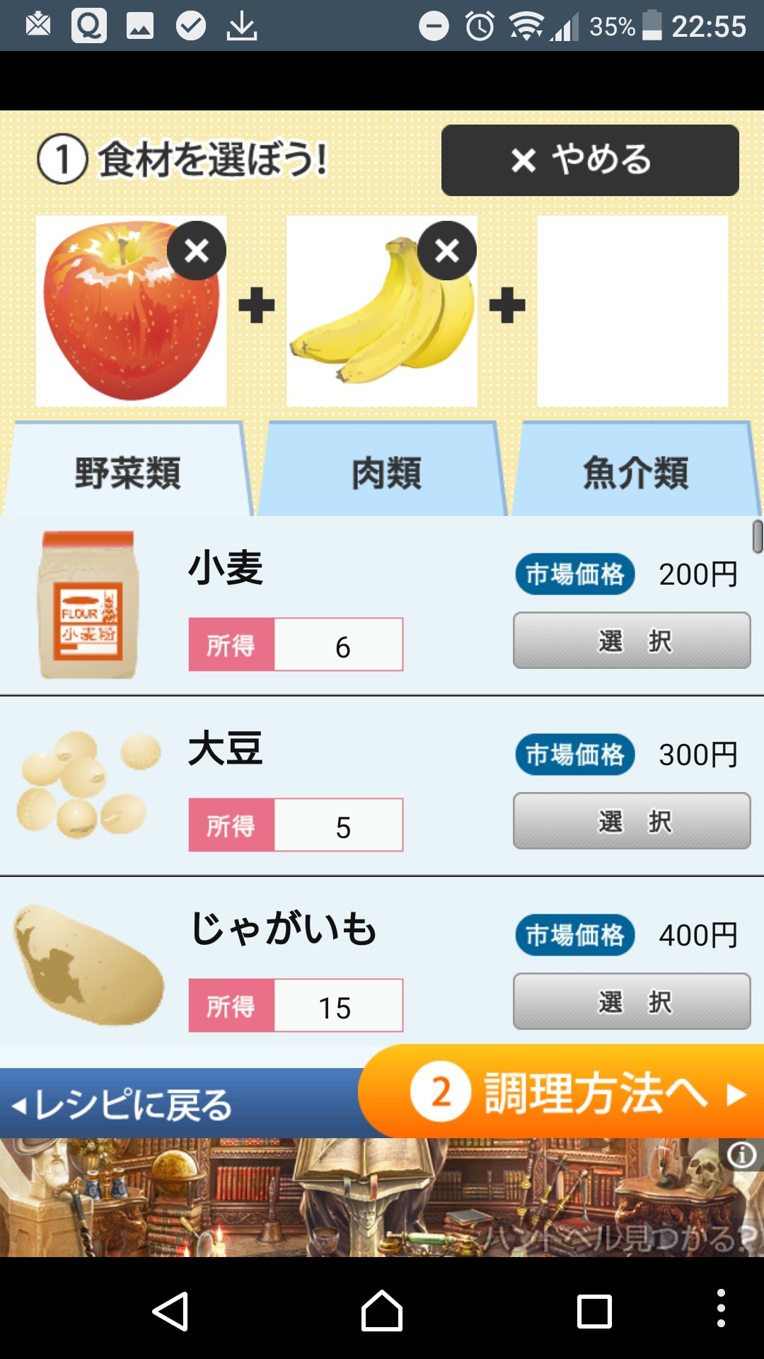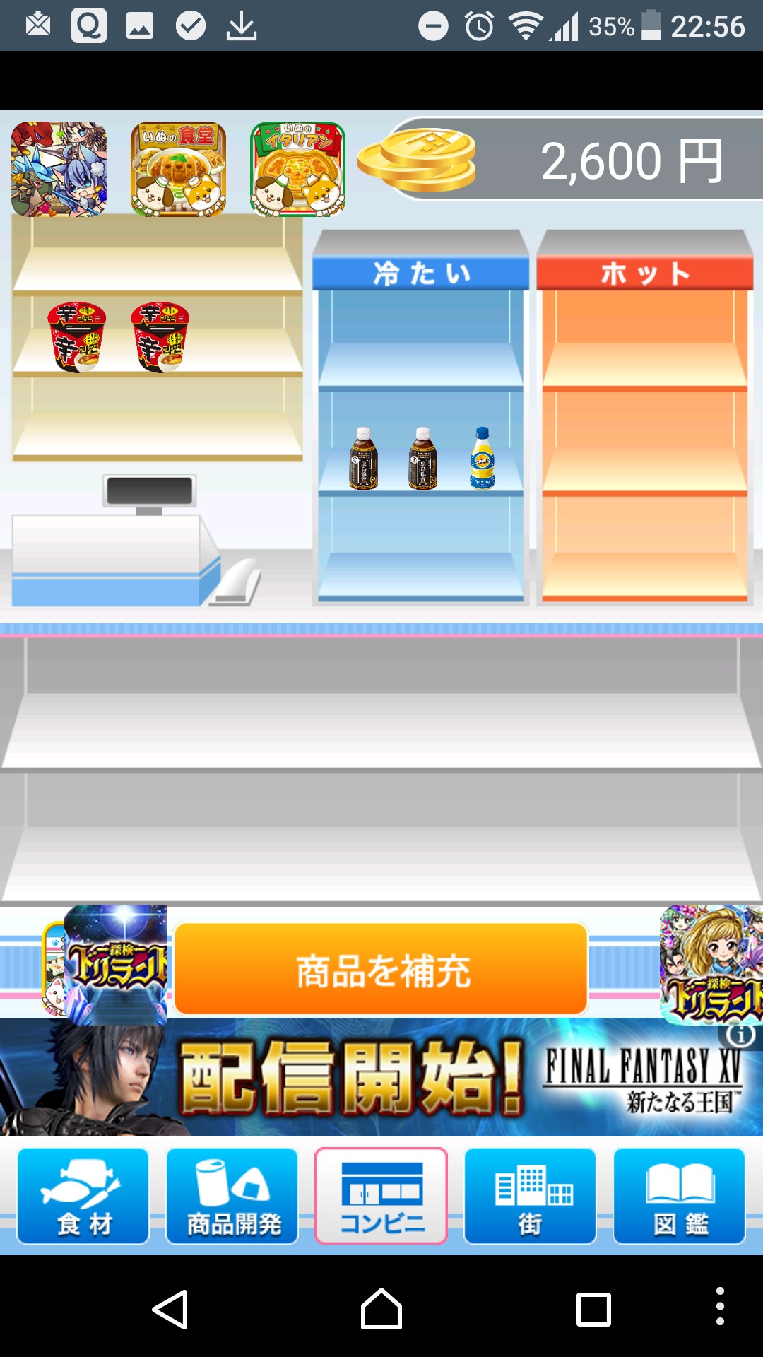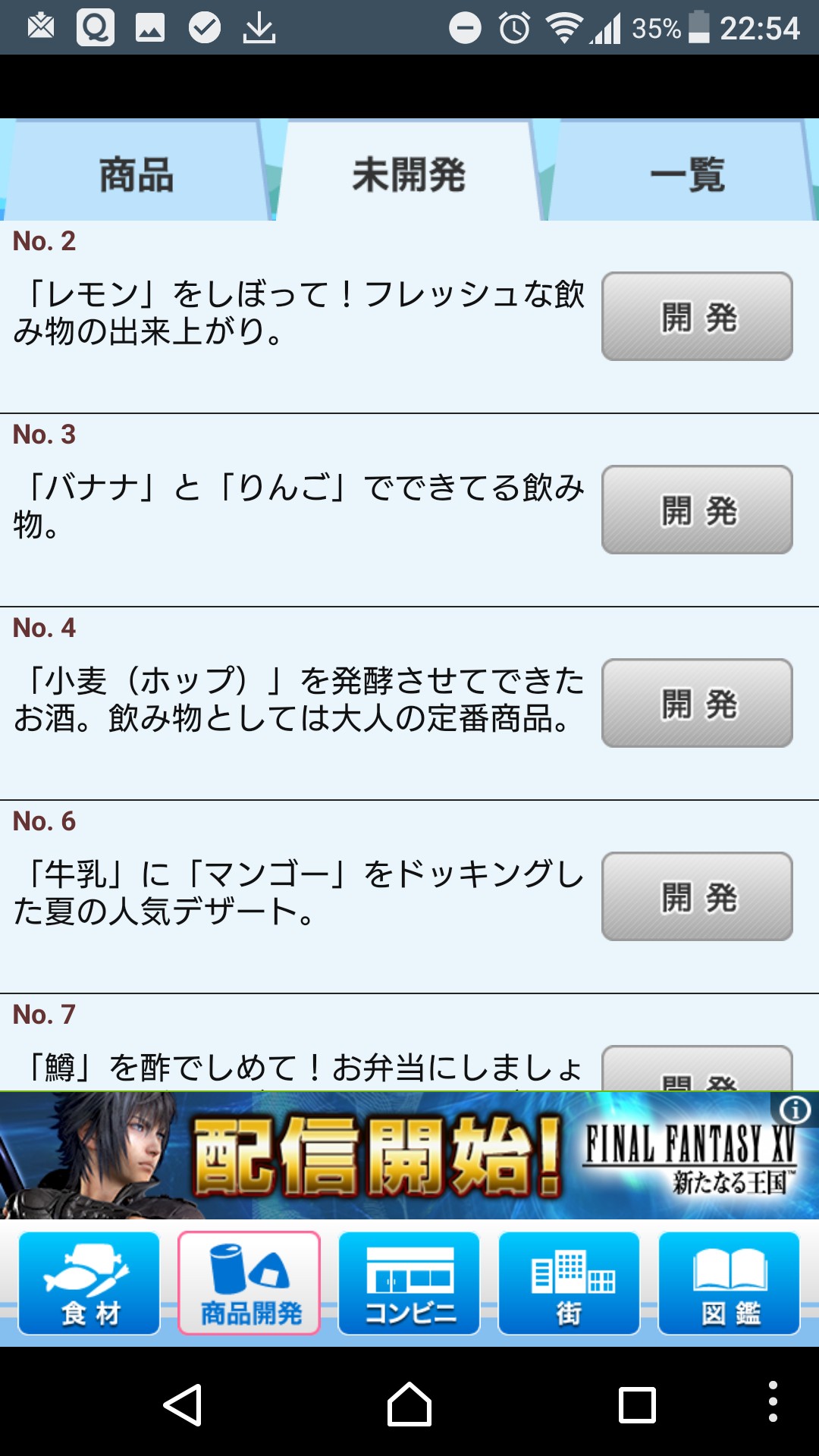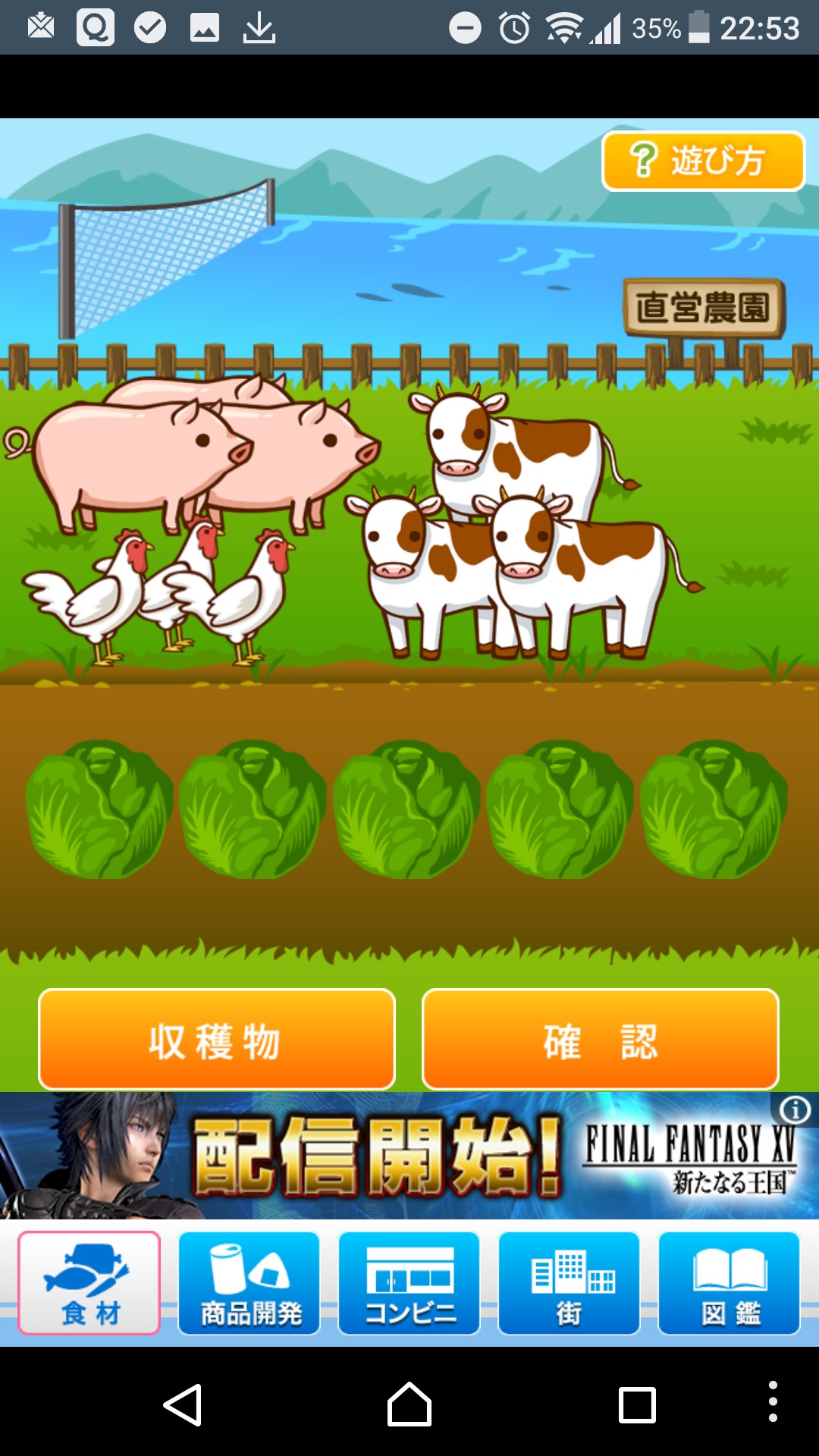 アプリを起動したらいよいよあなただけのコンビニが開店です。まずは、食材を農園から調達しましょう。農園で獲れる食材は野菜、肉、乳製品、海産物など様々。時間の経過とともに成長していく食材をいかに効率よく収穫するかがポイントです。たくさん収穫出来たら、お店に並べる商品の開発に取り掛かります。レシピを元に該当する食材と調理法を選んでいきましょう。商品の開発に成功したら、お店に並べて売り出します。売れたお金で街へ行き、雑貨屋でコンビニや農場を大きくしたり、本屋で新しいレシピのの本を手に入れたりすると、さらにこのゲームを楽しめるっしょう。開発した商品は、図鑑にコレクションされていきます。たくさん食材を収穫してお店で売れば売るだけ楽しめるようになっています。あなたもコンビニのオーナーになって商品のフルコンプリート目指しませんか?