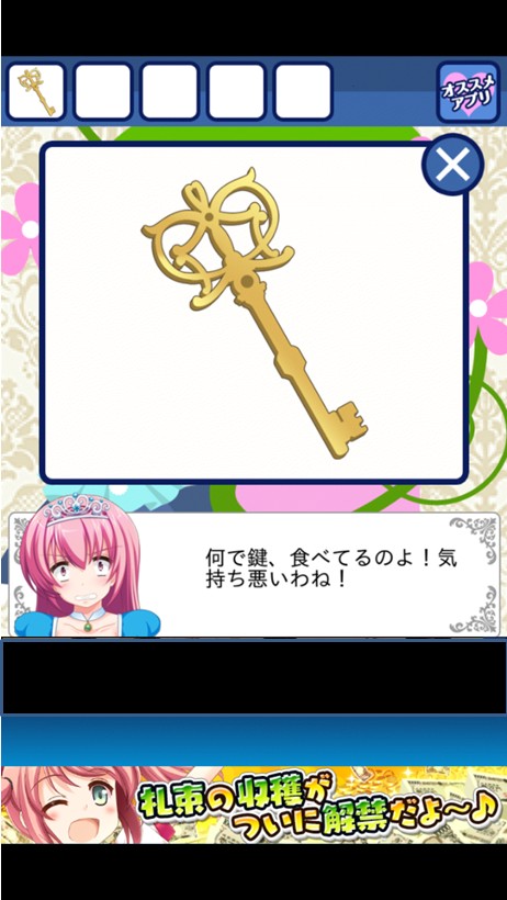 このゲームアプリは、魔女のおばあさんにかけてもらった魔法が解ける前に脱出するというあらすじです。主人公のまなみは、花粉症のためティッシュで鼻栓をしたまま魔法をかけてもらっているため、元の姿は絶対に見せられないという事情があります。そのため、皆さんがご存知のシンデレラの事情とは少々違いますが、この個性的なシンデレラのために脱出を手伝うことがプレイヤーのミッションです。セリフが萌え系ボイスになっていますので、男女関係なく萌え系が好きな人には特におススメのアプリです。