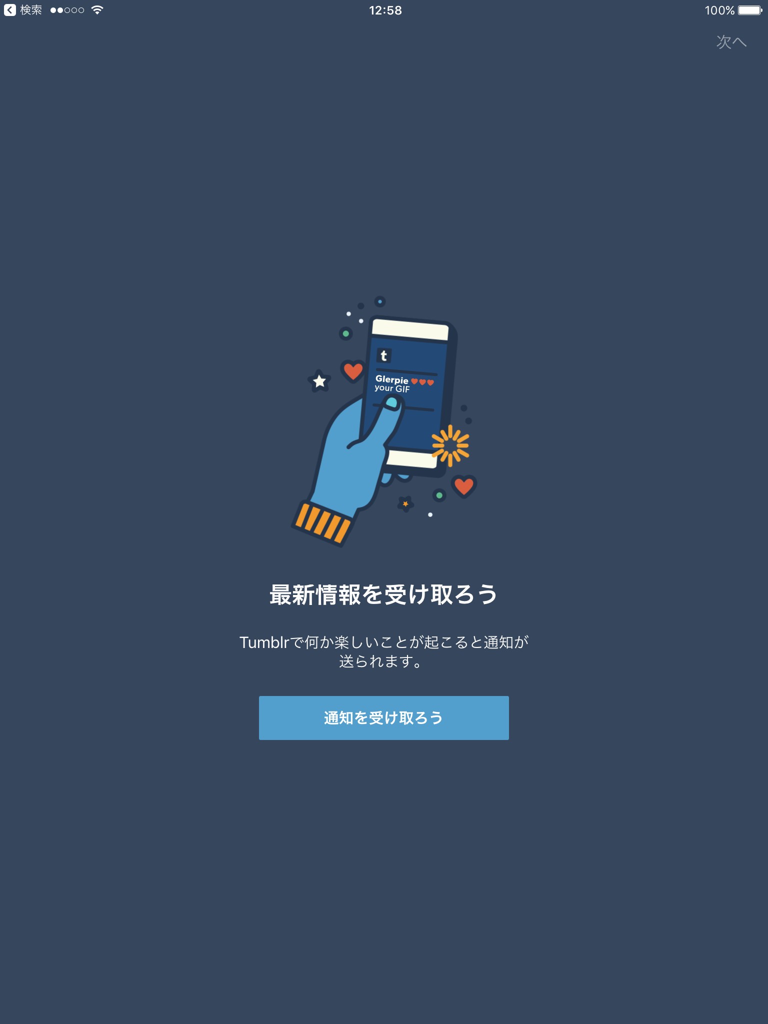 アプリ会員にならなくとも「Tumblr」のトップページから人気の投稿の閲覧だけなら使用できますが、フォローしたい人を見つけたり、コンテンツを投稿、リブログしてみたくなったら、アプリを使用してみましょう。まず、メールアドレスとパスワード、ユーザー名を登録します。次に、年齢を入力してすぐに利用開始です。最初は検索項目のフォローするタグを5つ選ぶように設定されています。アート、写真、旅、など気になるキーワードを選択すると、関連したブログが一覧で表示されるはずです。素敵なブログを見つけたら、いいね、または投稿者をフォローできます。ここまでは簡単ですよね。気に入った投稿はすべてダッシュボードに表示されます。自分のブログにリブログしましょう、それを見た他のユーザーに、あなたのブログをリブログされるかもしれません。
