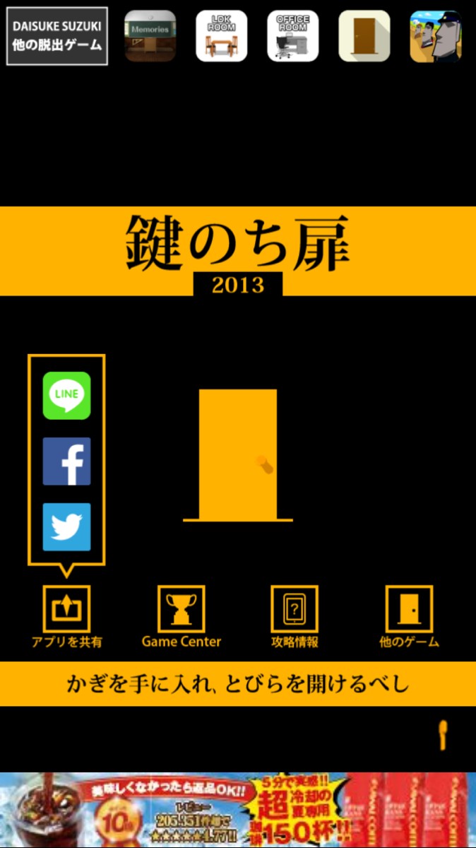 - 「脱出ゲーム 鍵のち扉 2013」は続きから始められるので安心!