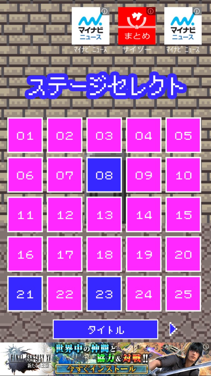 アプリを閉じても、続きからスタートすることが可能です。さらにステージセレクトページへ行けばさらに先のステージに挑戦することができるので、1つのステージで立ち止ってしまった時や、難易度の高いステージに挑戦したい場合、前のステージでクリアの達成感を味わいたいという時にはステージセレクトページを利用してください。