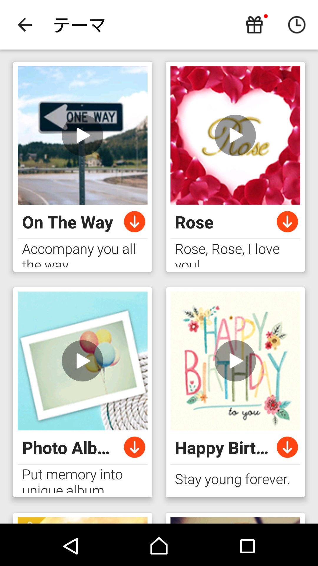 ・テーマ、動画時間、音楽、編集の表示からカテゴリー別に選択