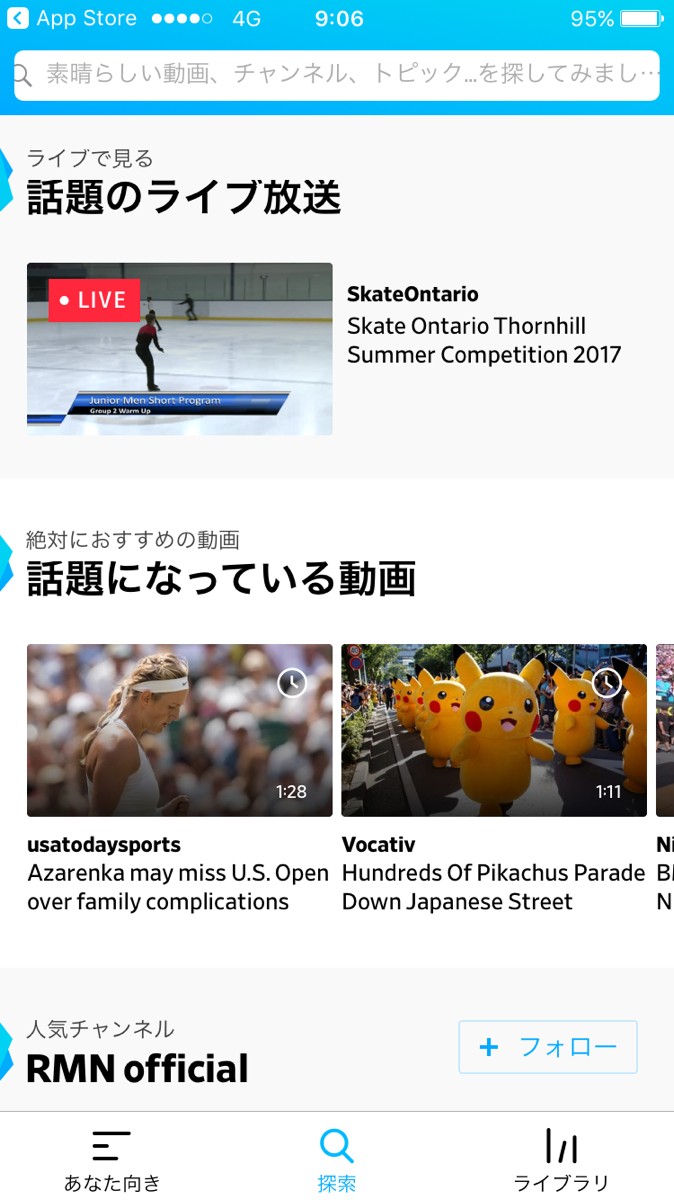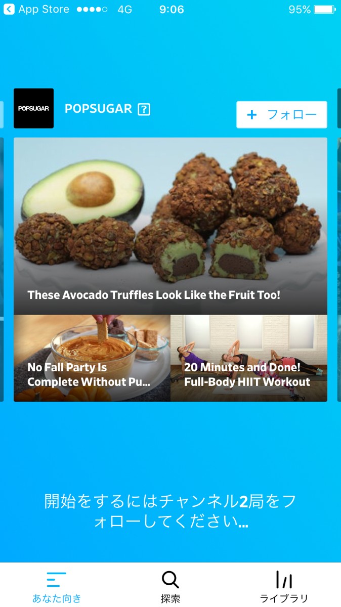 ・画面下に、あなた向き、検索、ライブラリとなっている