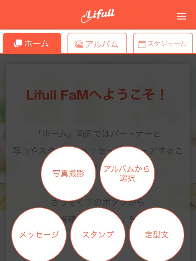 Lifull FaMは、メッセージ機能やスタンプ機能、フォトアルバム機能にスケジュール機能などママとパパが子育てをスムーズにしていくための機能が充実しています。