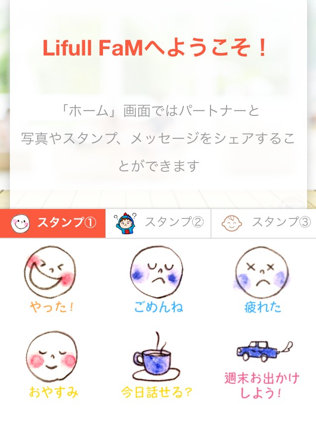 パートナーとのコミュニケーションツールとして、メッセージやスタンプ、写真などを使用することができます。