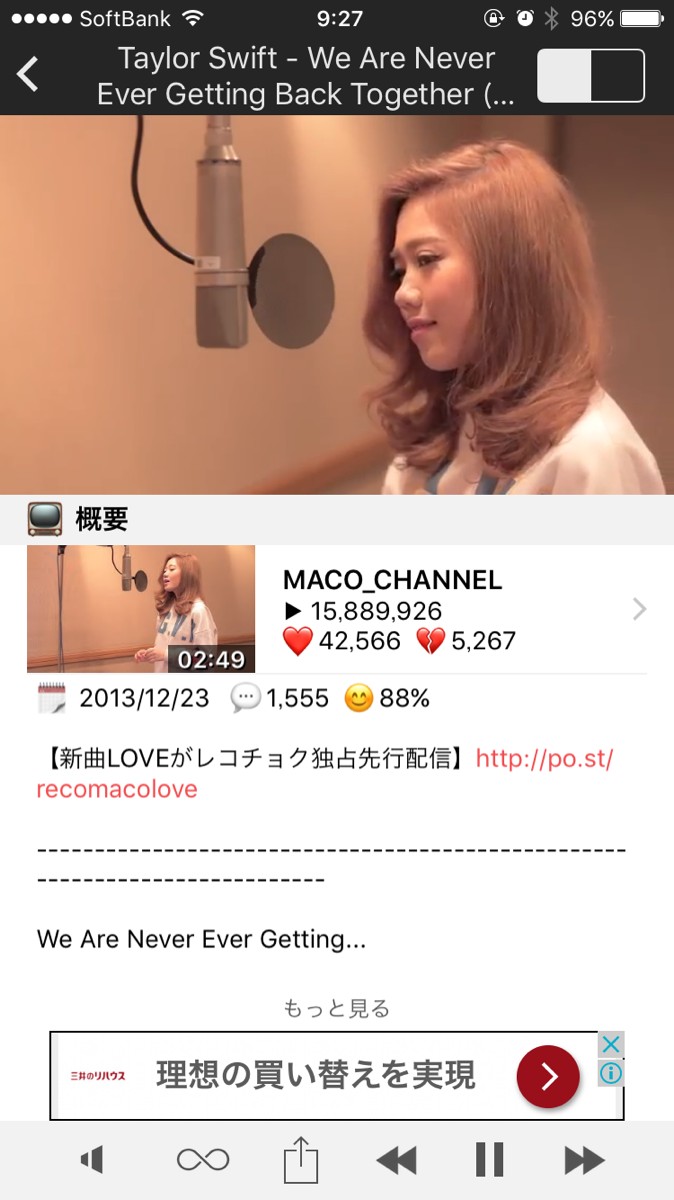 ・再生中の動画の再生時間の横にあるテレビのマークで動画の概要を見ることができます。