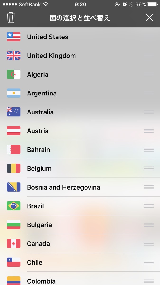 画面右上に国旗のマークが表示されているので、タップ。世界の国旗が一覧で表示されるので、自分の見たい動画の国を選択します。