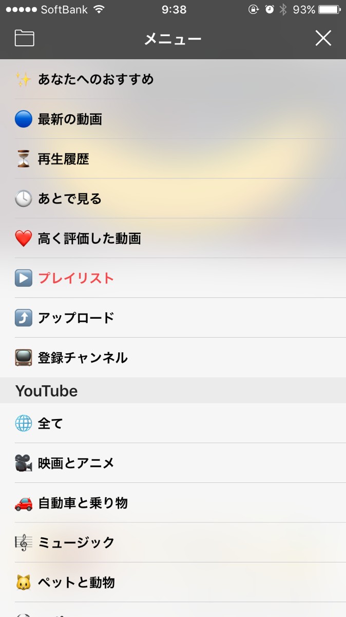 画面の左上のアイコンをタップ。YouTubeとの連携やメニューやカテゴリの並べ替え、画質の切り替え、フォントの大きさ、自動的に次の動画の再生のONOFF、画面の夜間モードの設定ができます。
