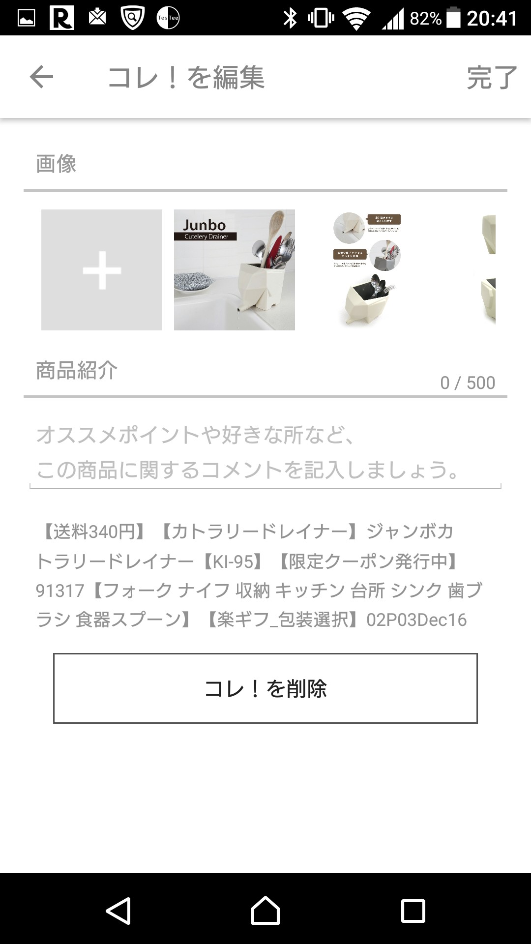 「コレ」した商品は楽天にもともと掲載されている画像や説明の他に、自分の言葉での説明文や写真を載せることができます。
