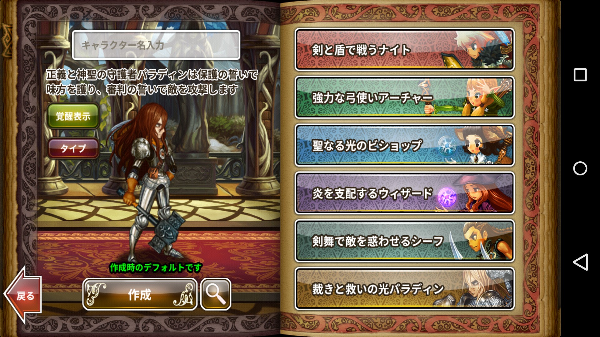 ナイト・アーチャー・ビショップ・ウィザード・シーフ・パラディンの六種類です。キャラクタースロットは複数あるので好みで選んでも問題ありませんが、