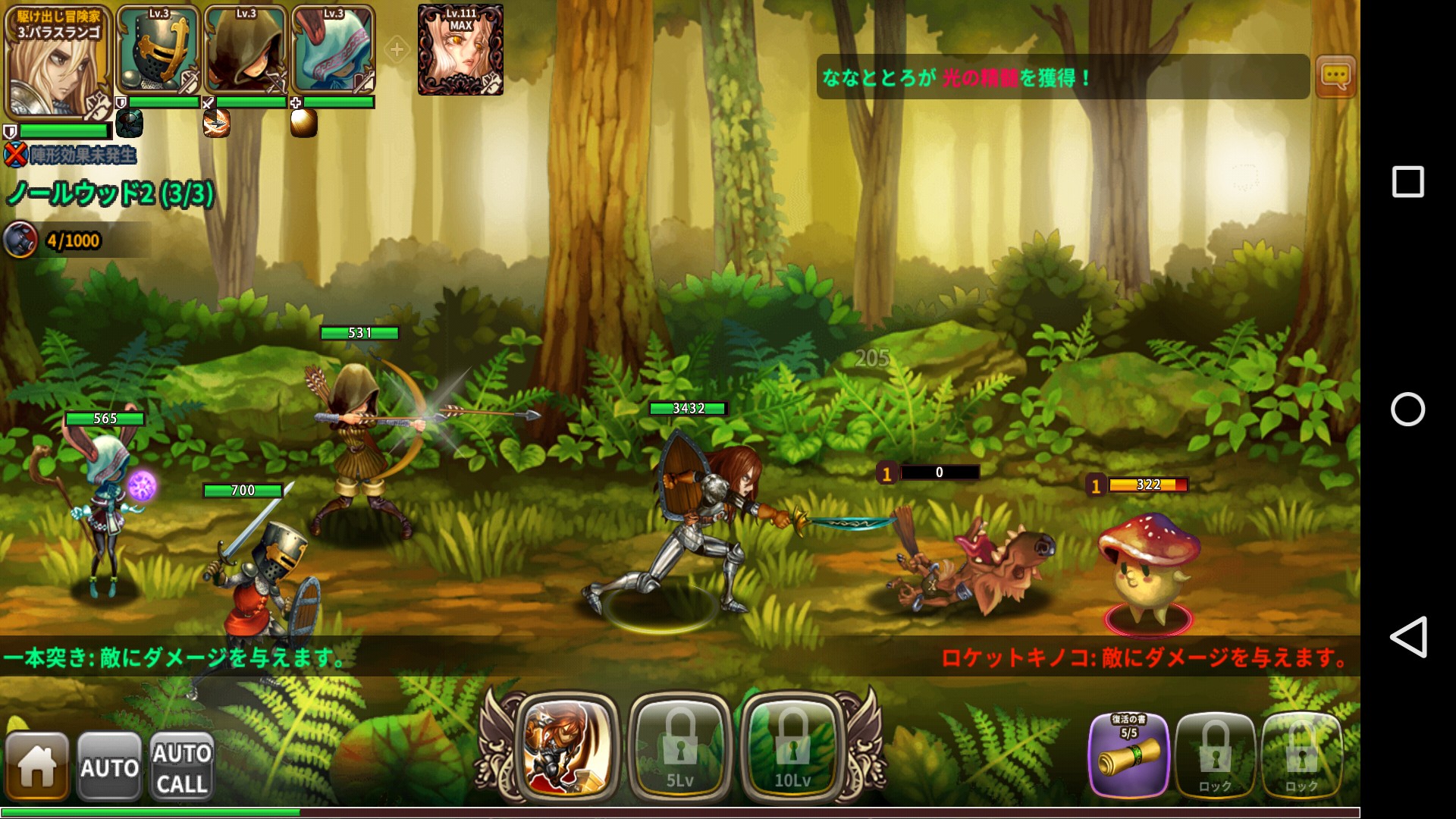 序盤は助っ人がかなり強く、味方も報酬で良いキャラがもらえるので苦戦することはないでしょう。主人公以外のキャラクターはオートになっていて、主人公もスキル以外は自動です。