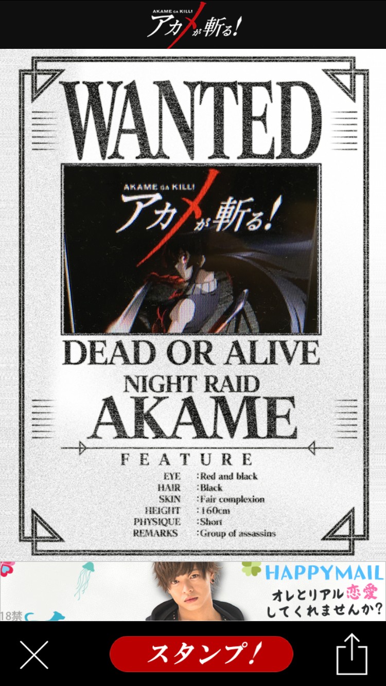「WANTED」のフレームを使ってアカメ気分を味わったり、