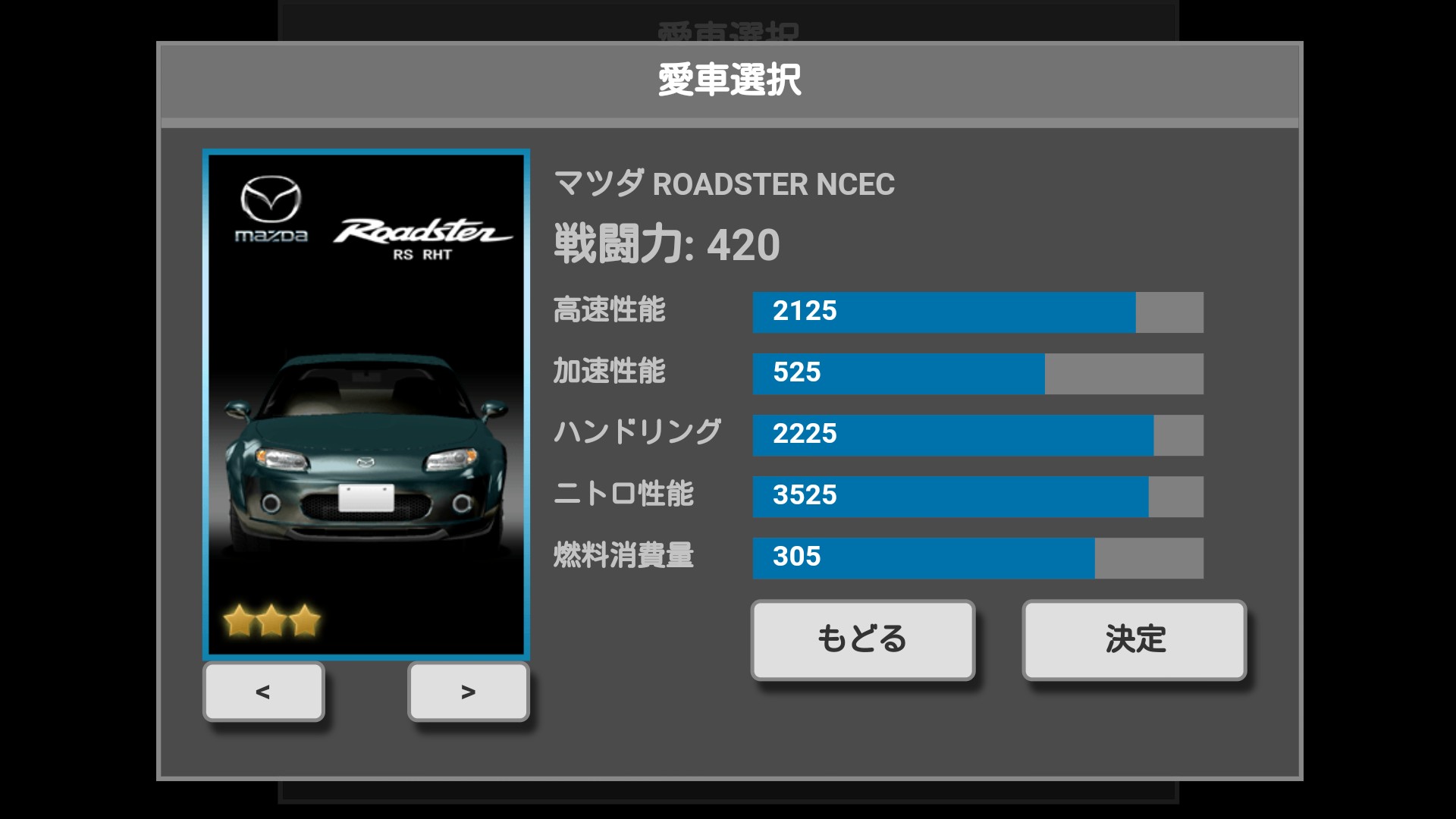 高速性能や加速などパラメーターの違いはありますが、どれも大差ないので好きな車で構いません。