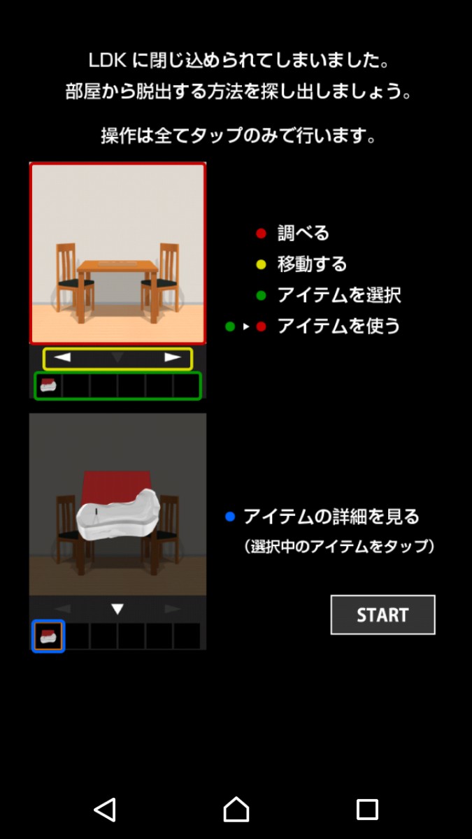 ゲームを実際に使用してみました。「脱出ゲーム LDK ROOM」の操作方法はタップするだけです。