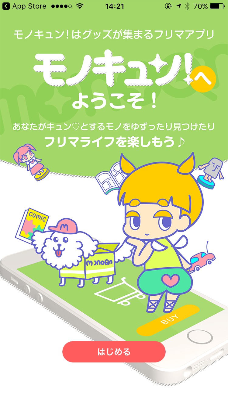 「買い物するならモノキュン!」はフリーマーケットアプリ。