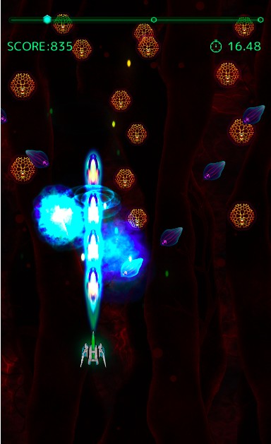 攻撃は自動で行うことができ、プレイヤーはスワイプで、兵器を上下左右に操作していきます。