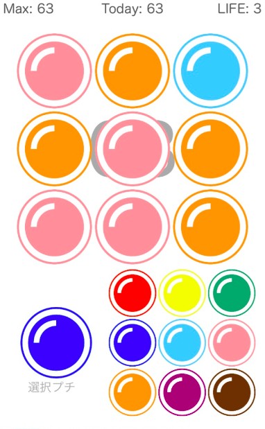 3秒経ってプチプチの色が消えたら、覚えた配置通りに色を選択してつぶしていってください。