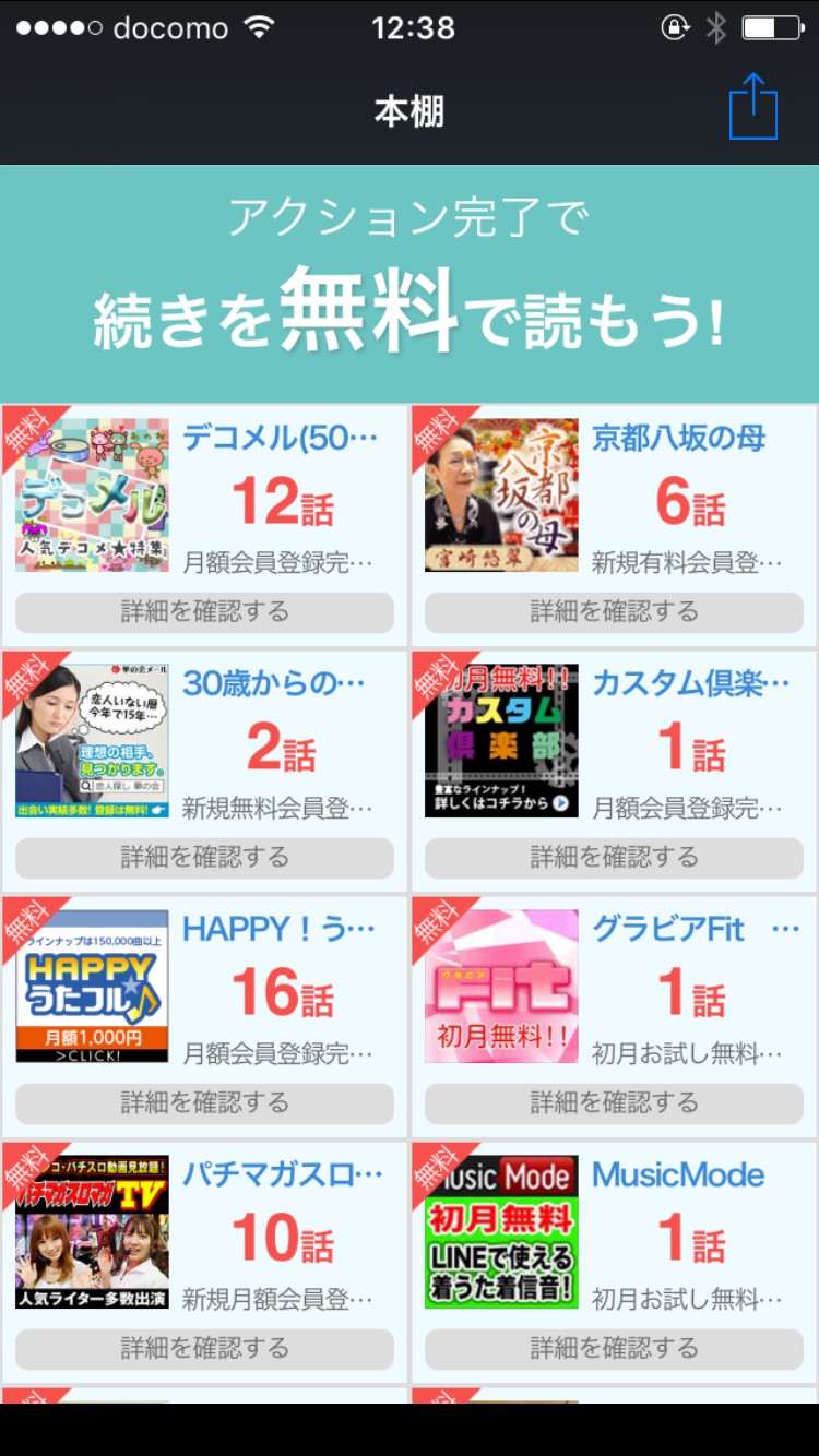 課金すれば手っ取り早いのですが、「アクション」を行うことで無料で続きを読むこともできます。様々なサイトやアプリの会員登録、インストールなど簡単なアクションばかりなので、課金に抵抗がある方はアクションをたくさんこなして無料で読むと良いでしょう。
