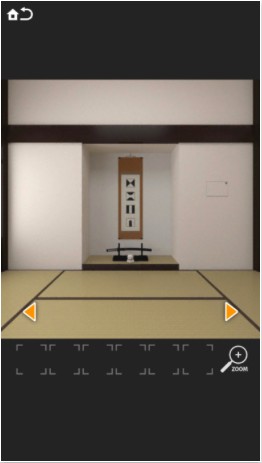 遊び方はとっても簡単。必要な操作はタップだけです。画面下両サイドに表示されている矢印をタップすると部屋を移動することができ、気になった場所をタップすると近づいて調べることができます。ゲットしたアイテムはタップで選択することができ、画面右下に表示されている「ZOOM」ボタンで拡大させることが可能。アイテムを選択した状態で所定の場所をタップすると使用することができます。