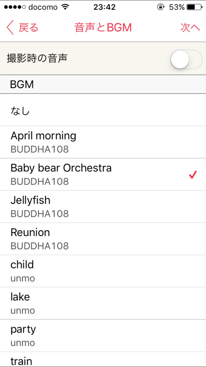 動画の雰囲気を生かすことができるBGMが9種類あります。撮影時の音声は消すこともできますが、せっかくなら素敵なBGMと共に残してみてくださいね。