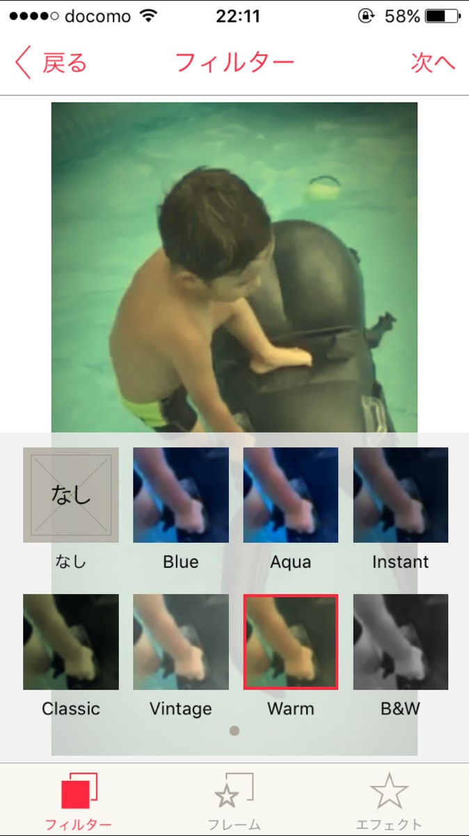 スマホ内臓のビデオで撮影した動画は色も鮮明で綺麗ですが、雰囲気ある動画は残せませんよね。このアプリのフィルター加工ならノスタルジックな「Warm」加工や、ポップな印象になる「Aqua」など雰囲気ある動画が残せます。