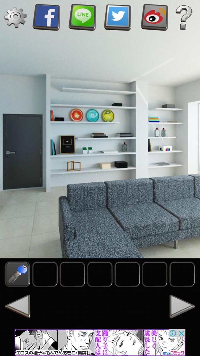 アプリ起動後、ゲームスタートを選択しプレイします。あなたは、おしゃれな部屋に閉じ込められているので部屋をざっと確認しましょう。