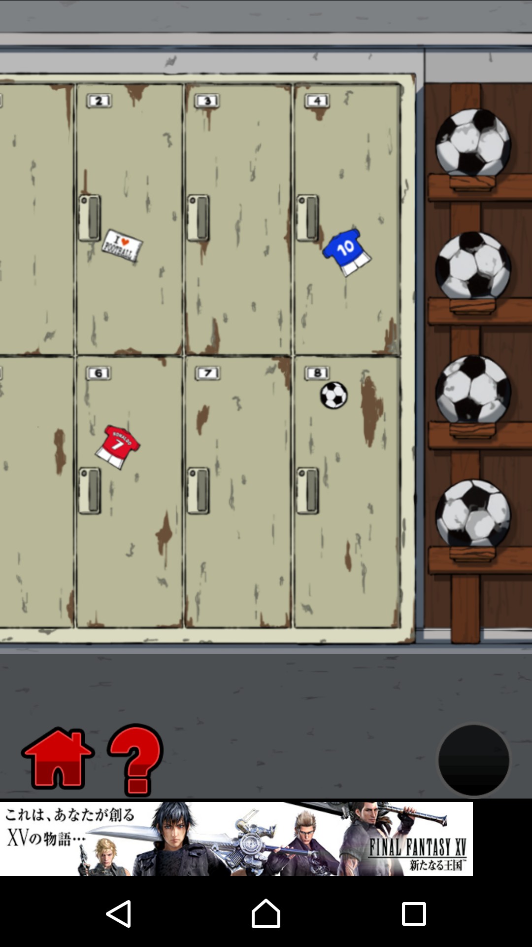 脱出ゲームのセオリーとも言える、「ある場所で入手した情報を別の場所で入力する」「ある場所で入力したいアイテムを別の場所で(場合によっては合成して)使用する」という手法は、このゲームにも当てはまります。たとえばサッカー部のロッカーには、番号を入力する場所がありますが、その番号はロッカーに書いてあったりします。アイテムや情報、仕掛けが小さく描かれている場所もありますので、細かいところを見逃さないように、注意深く観察しましょう。