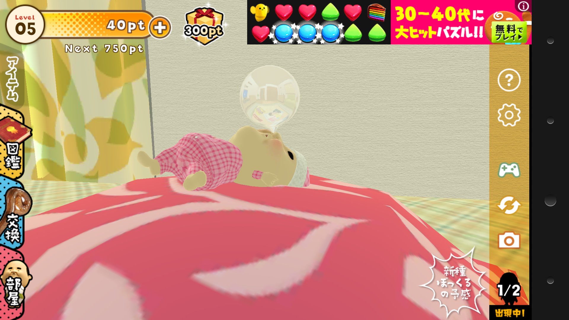 ハートを貯めると、レベルアップして新種のおじぽっくるが出現します。