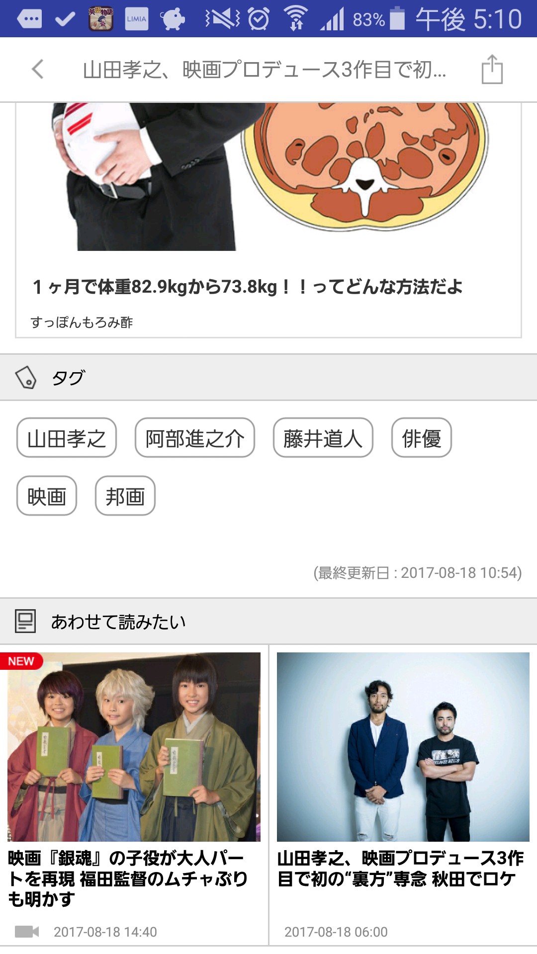 友達が好きな映画や芸能人などのニュースを発見して知らせたい時は、SNSなどに簡単に共有ができます。上部のタイトルバーの右にある共有するボタンを押すと、共有できるアプリの一覧が表示されます。自分が使いたいアプリを選ぶだ情報をシェアできるので、友達といろいろな話題を共有して皆で盛り上がりましょう。