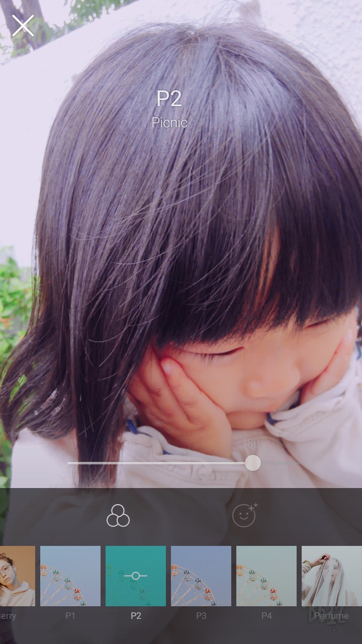 80種類以上の豊富なフィルターがあり、自撮りやフード、風景など場面にあったフィルターが用意されています。画面をスワイプするだけでフィルターをかけることができます。