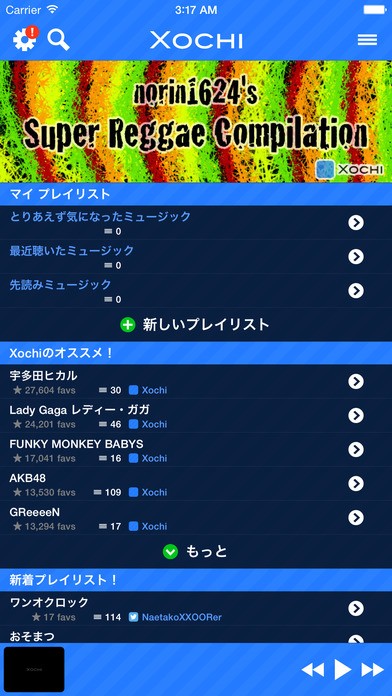 「Xochi」のプレイリストに追加した曲はオフラインでも聴ける!