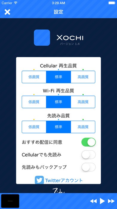 以上が「Xochi」のおすすめポイントです。プレイリスト作成に制限はありません。好きなだけプレイリストを作ってお気に入りの曲をたくさん追加しておきましょう。自慢のプレイリストはTwitterアカウントを利用して、ほかのユーザーに共有できます。共有したプレイリストの再生数も分かるので、作り甲斐がありますよね。もちろんほかのユーザーが共有したプレイリストも再生できるので、自分で曲を選ぶ手間が面倒な人は活用してみてください。また、毎日「Xochi」おすすめのプレイリストも共有してくれるので、新しい曲を開拓したいときは覗いてみましょう。最後に評価が高いポイントは、おやすみタイマーです。15分・30分・60分からタイマー設定できるので寝落ちしても安心ですね。