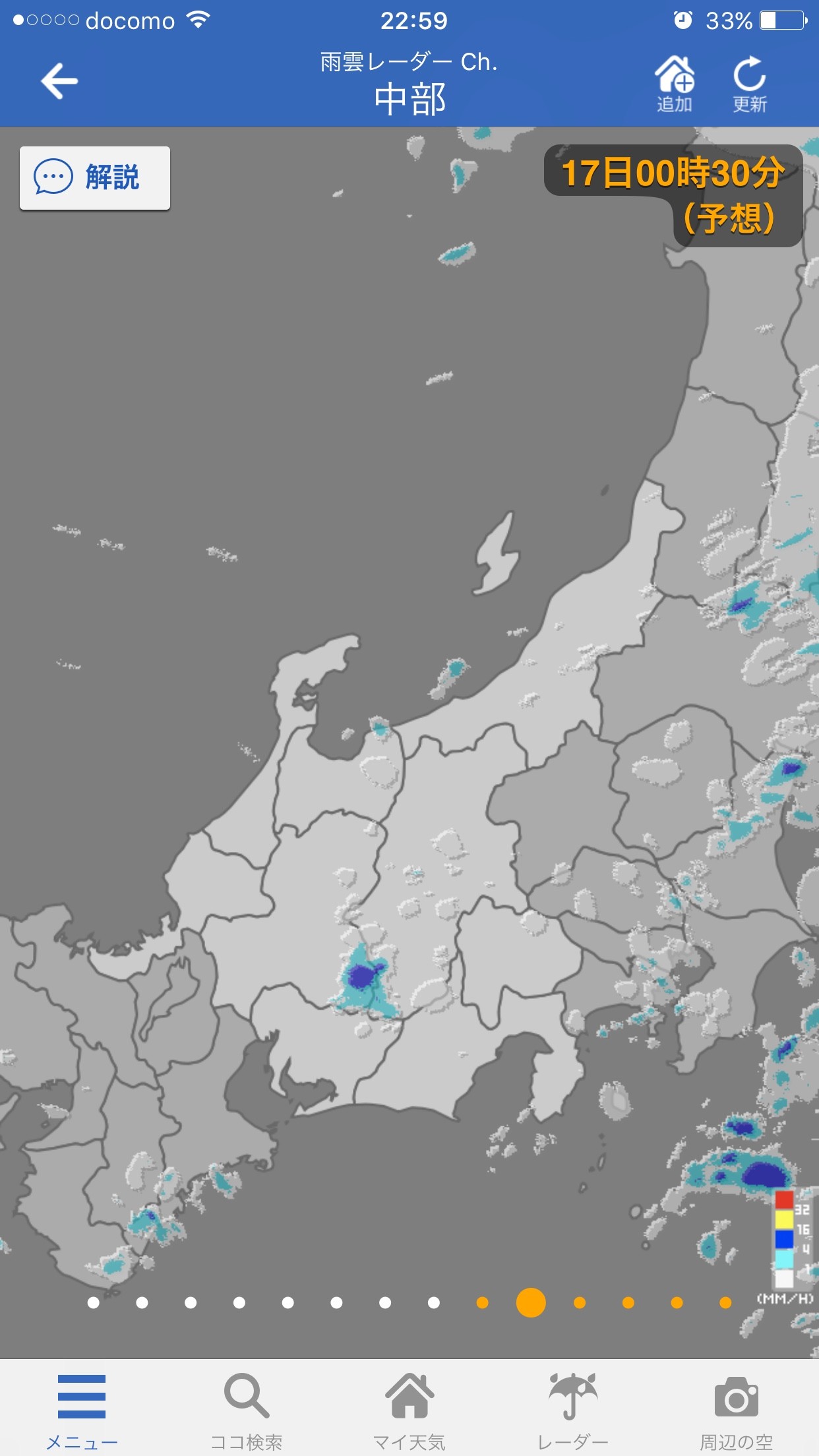 - 5分毎の雨雲の動きがわかる!
