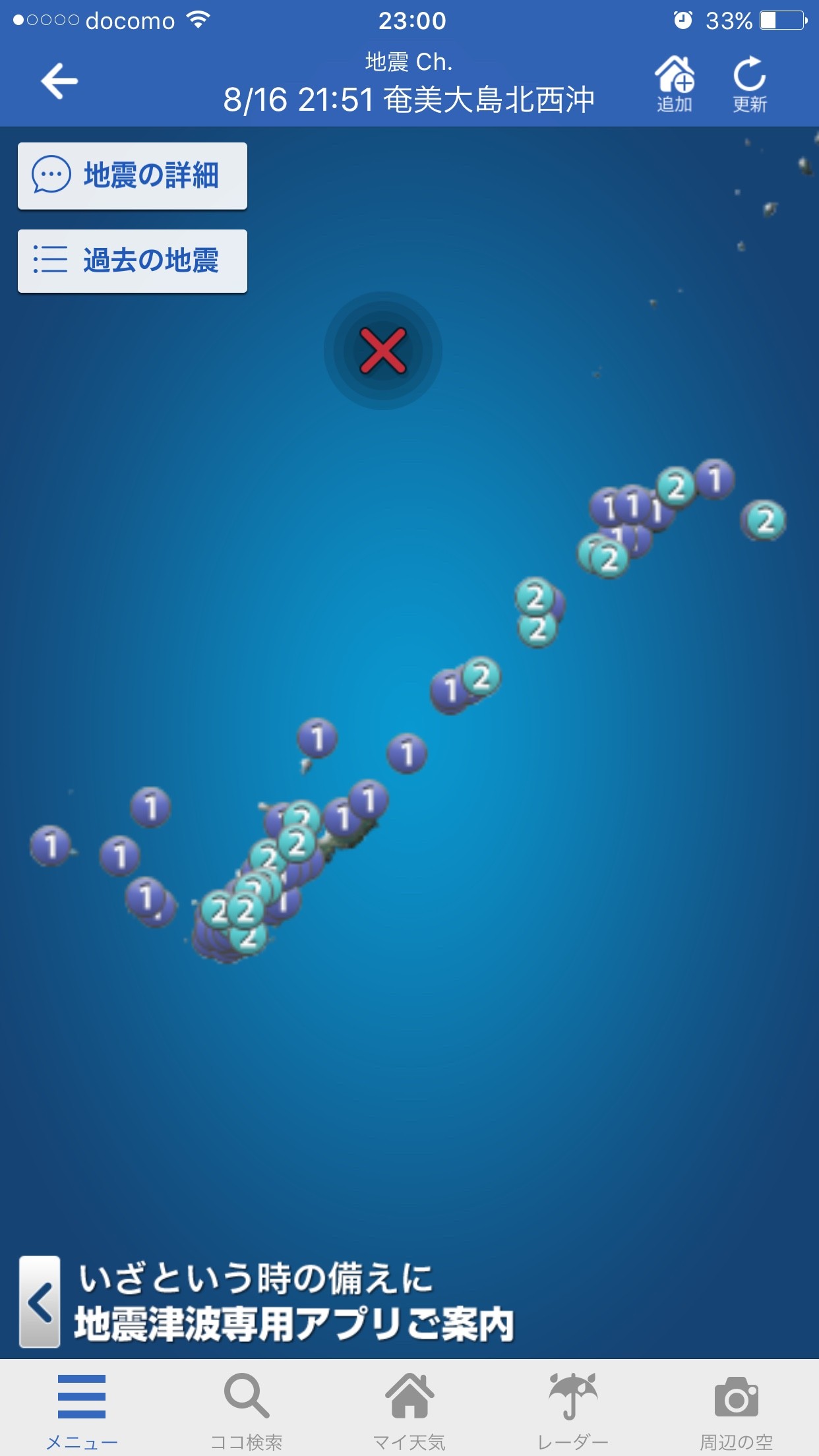 地震の際の各地の震度や震源地、津波の高さや津波通達時刻、火山などのライブカメラ、ゲリラ豪雨などの情報まで知ることができてしまいます。