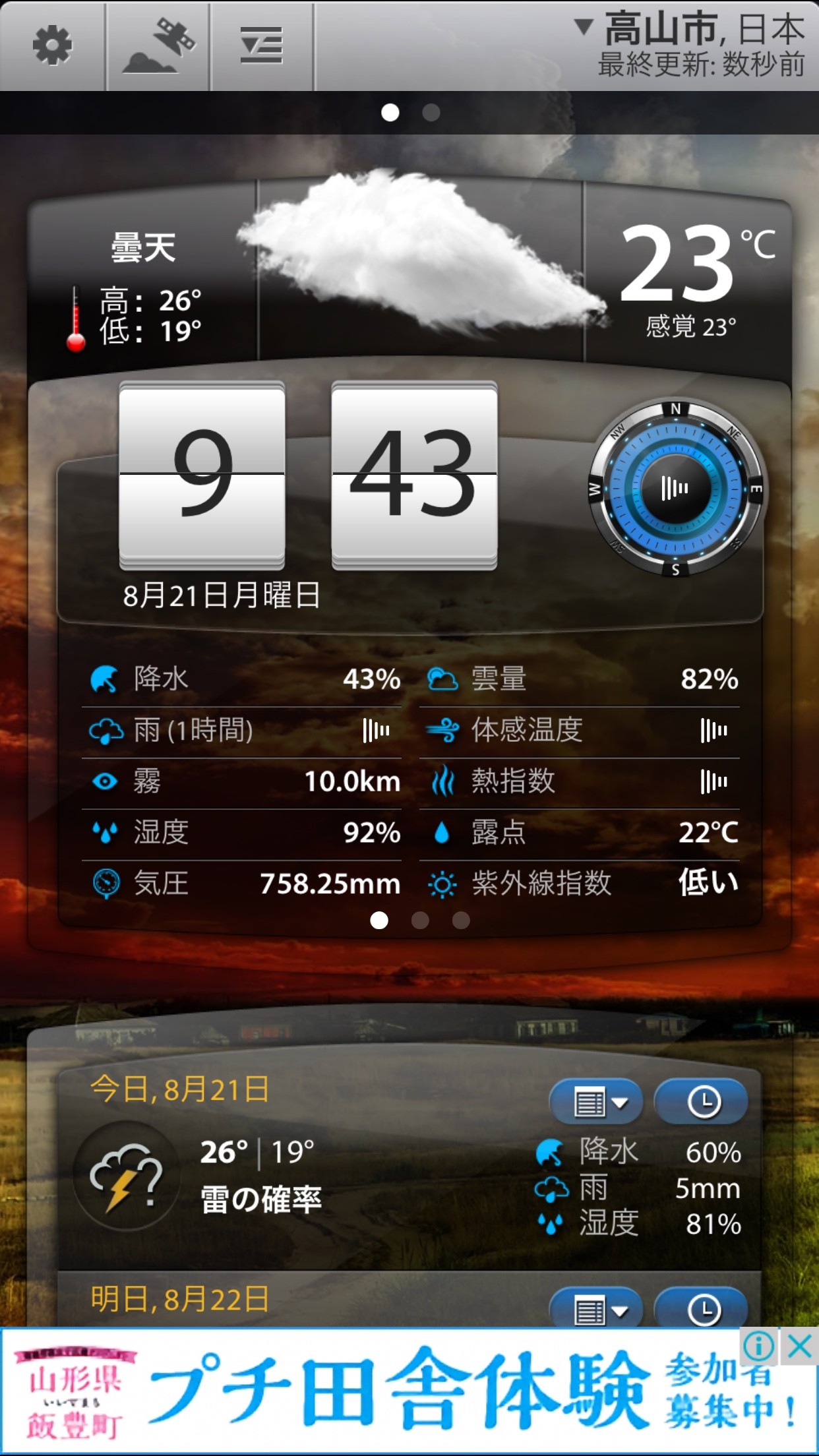天気の正確さと見やすくシンプルな画面であなたを少し天気から身を守ってくれるこのアプリはみなさんにおすすめします。