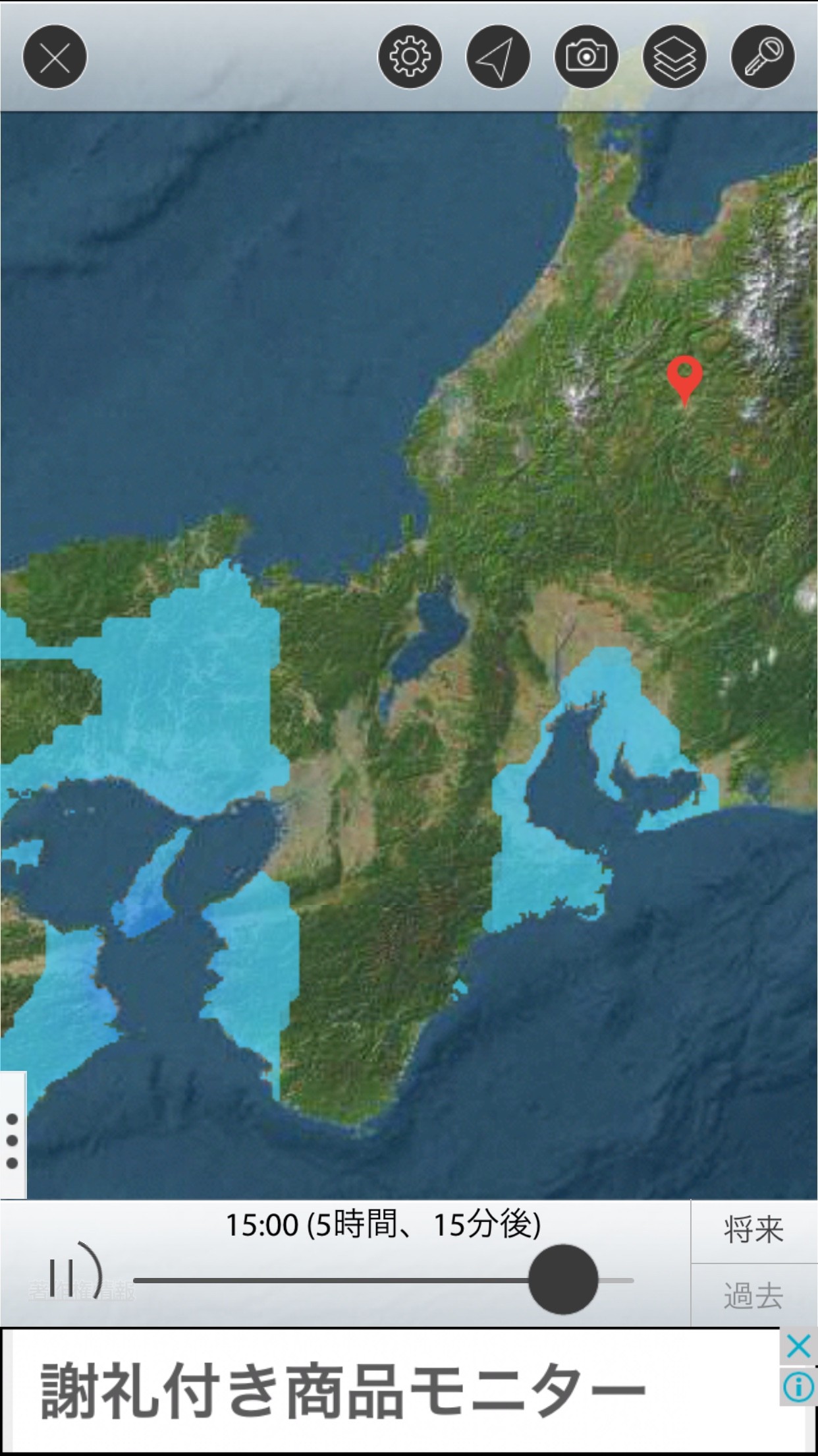 これは地点を登録、もしくはホーム決定してある場所の現在の天気や雨の量を素早く確実に調べることができます。