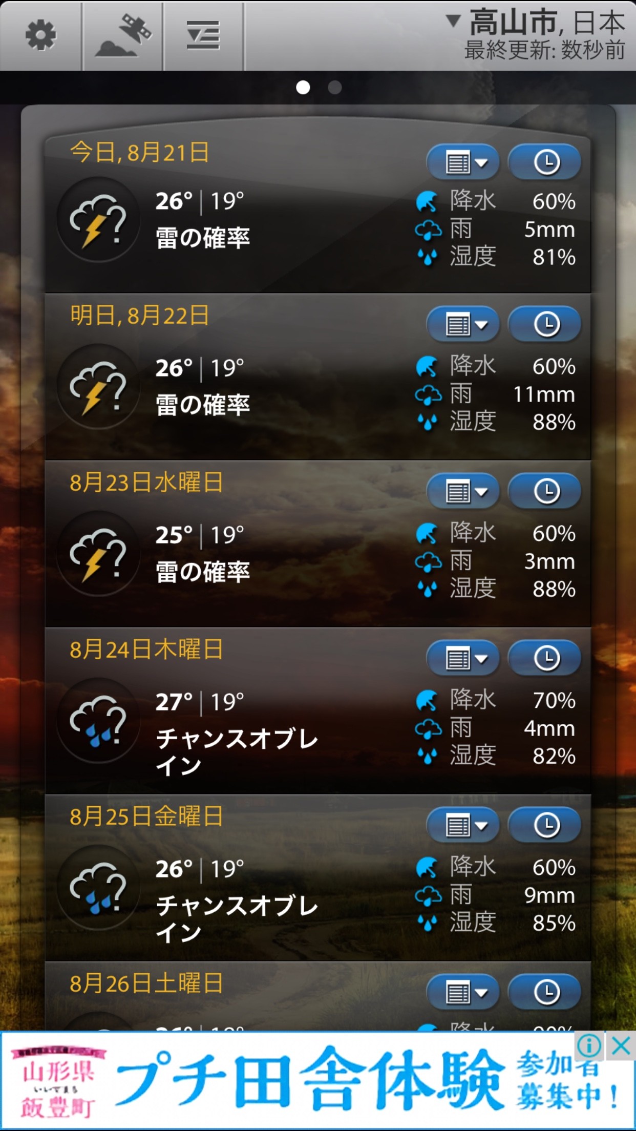 こちらのアプリが正確な理由に、「ウェザーメート」は最も正確で信頼性の高い気象情報を確保するために業界のリーダーである「weather underground」からの正確な気象情報を使用しているので正確なお天気情報を得られるんです。
