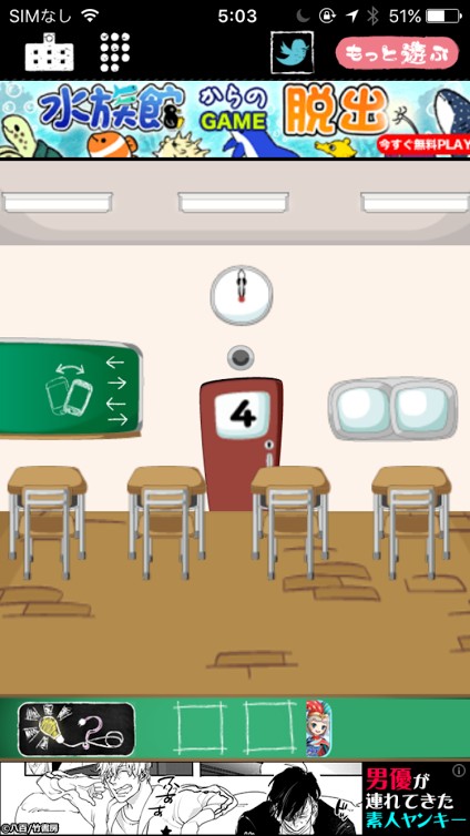 「ここはいつもの通い馴れた学校。でも何だかいつもと様子が違う?きみはなぜか教室に閉じ込められてしまった。さぁ、この教室から脱出しよう」アプリのタイトル「脱出ゲーム学校」にもあるように学校の教室から脱出するゲームです。教室内に仕掛けられた様々な謎を解き、無事に学校から脱出しよう。ステージの問題は、始めは易しく、次第に難しくなっていくので、脱出ゲーム初心者の人や脱出ゲームが苦手な人も大丈夫ですよ。ちょっとした隙間時間や、電車やバスでの暇つぶし程度でも謎解きができるので、暇な時間がある時には「脱出ゲーム学校」で遊んじゃいましょう。