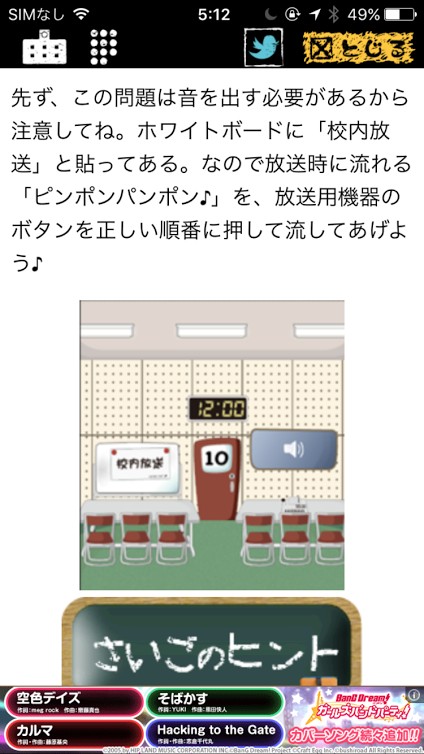 「脱出ゲーム学校」の難易度は簡単なので、誰でも全クリを目指すことが可能です。また、クリアしたらツイッターに投稿することもできるので、全クリした際はツイートしてみんなに自慢しちゃいましょう。脱出ゲーム初心者の方向けの優しい内容なので、小さなお子さんから大人までもが楽しめるおすすめのアプリですよ。