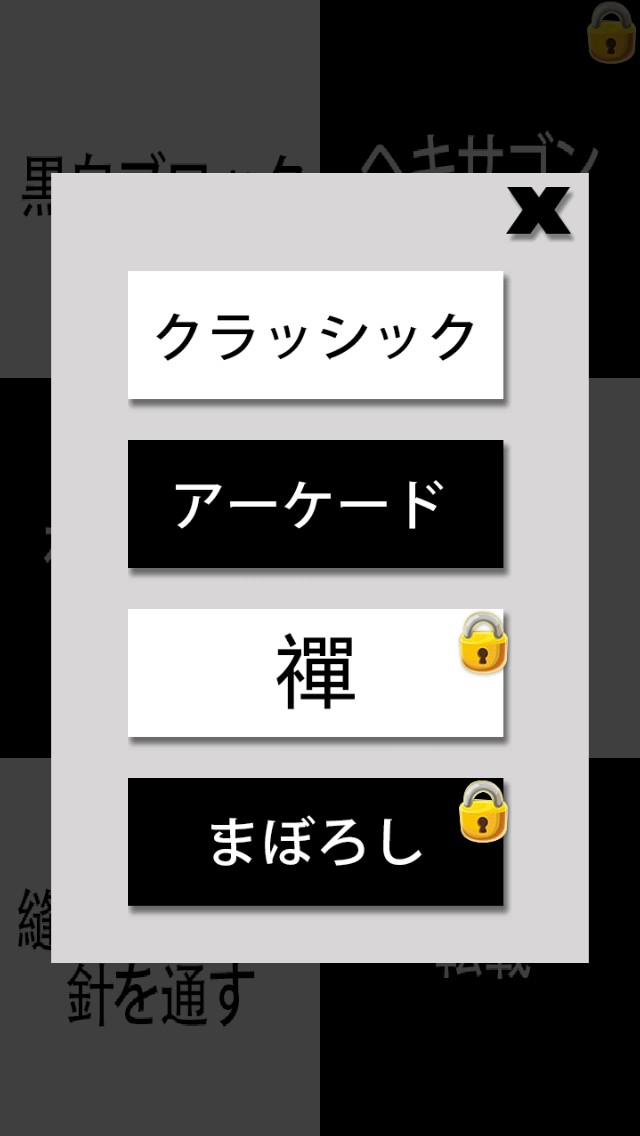 黒白ブロック以外にも、4種類のゲームが入っています。